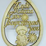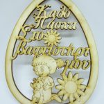 Ξύλινο Αυγό 15 εκ. κρεμαστό Καλό Πάσχα Στο βαφτιστήρι μου (αγόρι)