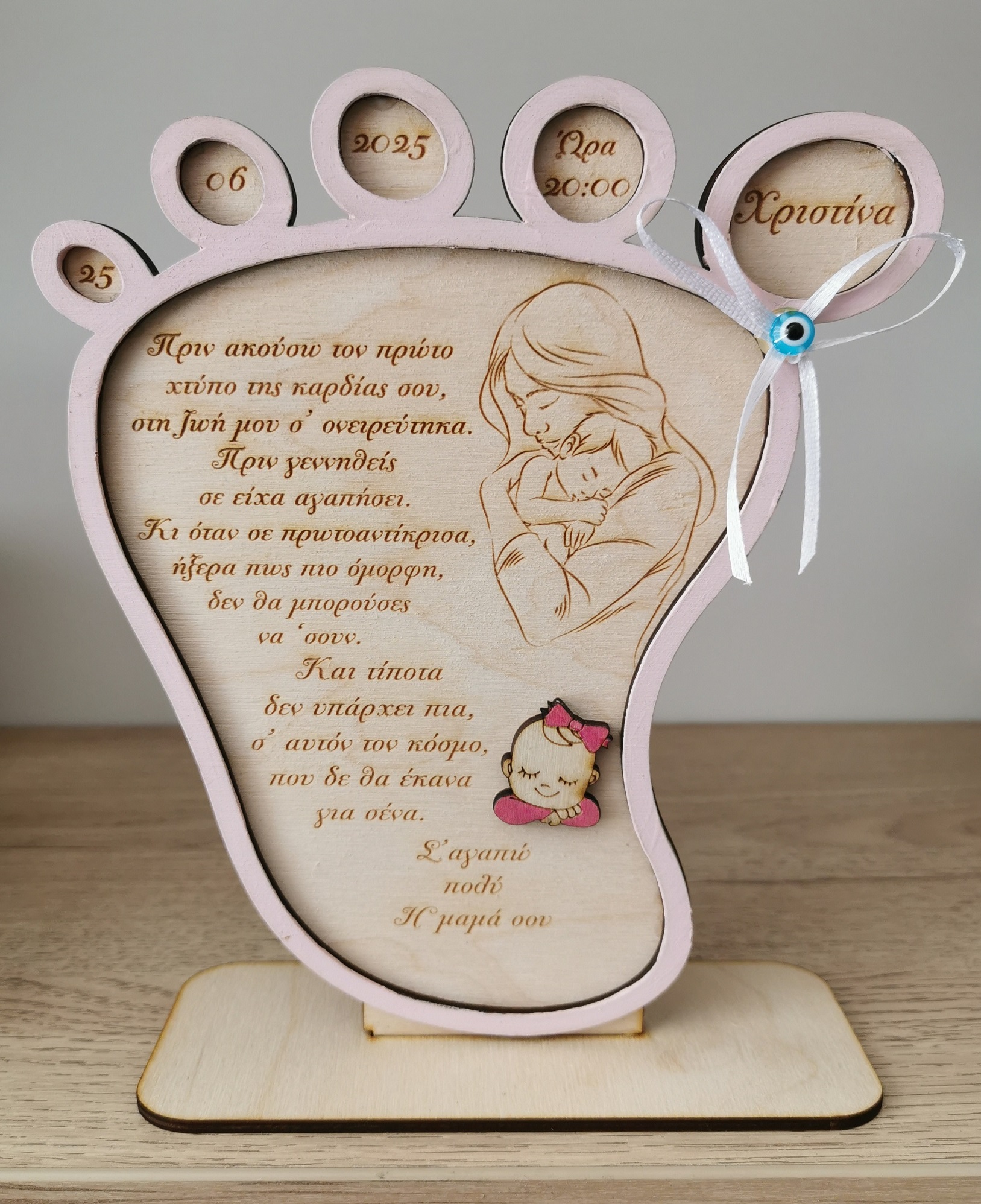 Μπορείτε να προσθέσετε διάφορα στοιχεία για προσωποποίηση, όπως ονόματα, ημερομηνίες, ευχές, ή άλλα εξατομικευμένα μηνύματα, ανάλογα με τον τύπο του προϊόντος και τις διαθέσιμες επιλογές.