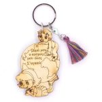 Χειροποίητο μπρελόκ με ξύλινο στοιχείο, μεταλλικό στοιχείο μάτι, χειροποίητη φούντα.