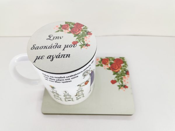 Σετ σουβέρ με κούπα κόκκινο λουλούδι