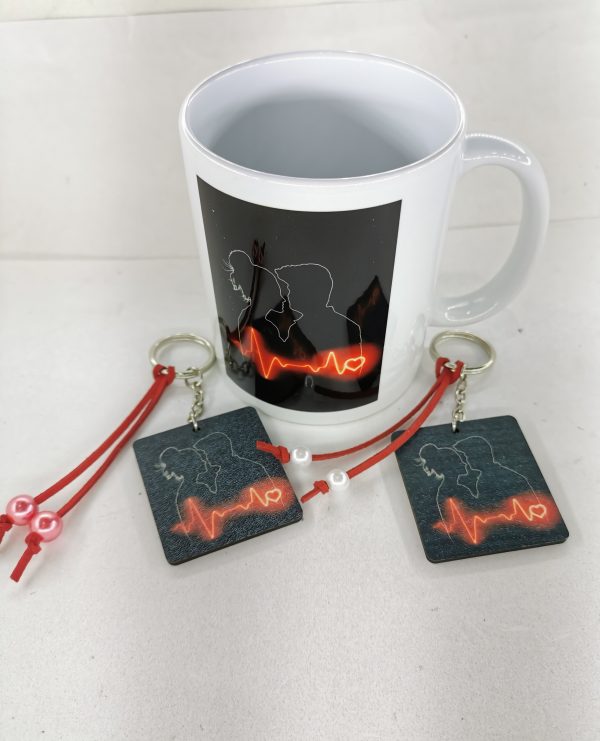 Κούπα με ζευγάρι καρδιοχτύπι με ένα μπρελόκ