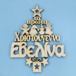 Ξύλινο διακοσμητικό με ευχές και κάλτσες με ονόματα (της αρεσκείας σας) 15 εκ.