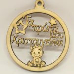 Ξύλινο στρογγυλό κρεμαστό με ευχές αγόρι (Τα πρώτα μου Χριστούγεννα) 10 εκ.