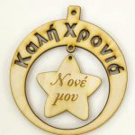 Ξύλινο στρογγυλό κρεμαστό με ευχές (Καλή Χρονιά), σε αστέρι (Νονέ) 10 εκ.