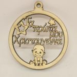 Ξύλινο στρογγυλό κρεμαστό με ευχές κορίτσι (Τα πρώτα μου Χριστούγεννα) 10 εκ.