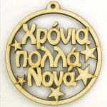Ξύλινο στρογγυλό κρεμαστό με ευχές (Χρόνια Πολλά Νονέ και Νονά) 10 εκ.
