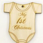 Ξύλινο στρογγυλό με φιόγκο και ευχές (My 1st Xmas) 8 εκ.