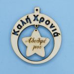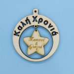 Ξύλινο στρόγγυλο Καλή Χρονιά (Αδελφή και Αδελφέ) 10 εκ.