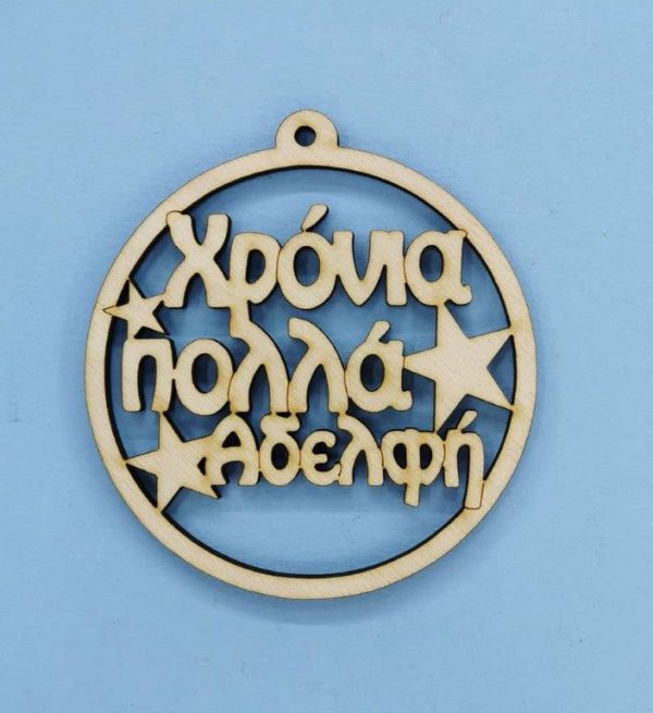 Ξύλινο στρόγγυλο Χρόνια Πολλά (Αδελφή) 10 εκ.