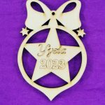 Στρογγυλό Αστέρι ξύλινο με φιόγκο και Ευχή (Τύχη) 10 εκ.