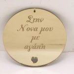 Plexiglass καθρέφτης χρυσός στρόγγυλο με ευχές (Καλή Χρονιά με Αγάπη, Υγεία & Ευτυχία) 6 εκ.