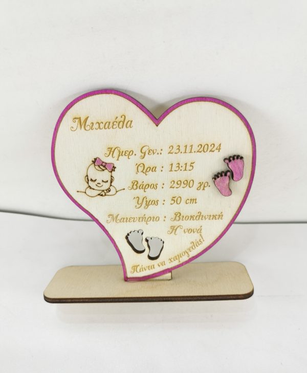 Καρδιά αναμνηστικό γέννησης 10εκ. Σταντ