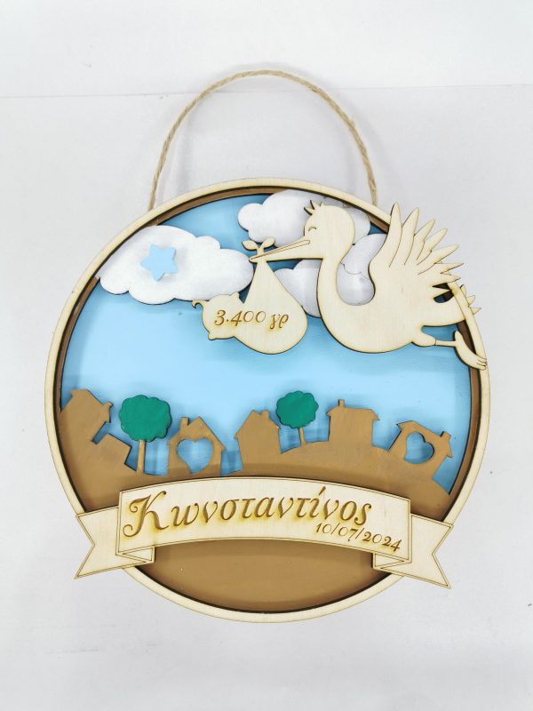 Ξύλινο αναμνηστικό γέννησης 20εκ. 3d αγόρι κρεμαστό (στοιχεία επιθυμίας σας)