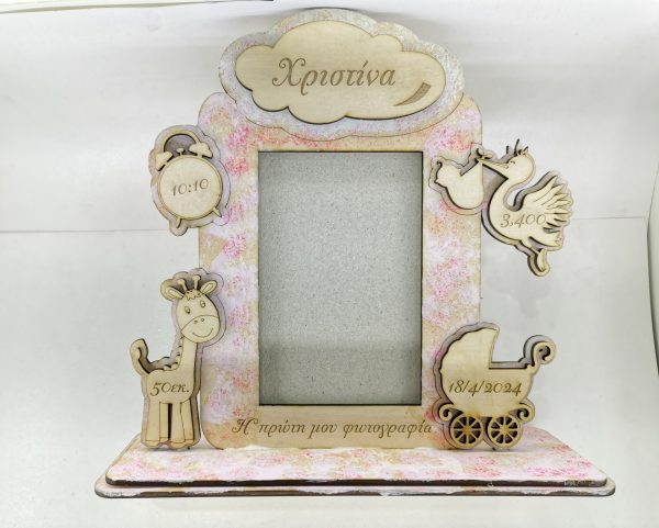 Ξύλινο αναμνηστικό γέννησης 25 εκ. σταντ κορίτσι (στοιχεία επιθυμίας σας)