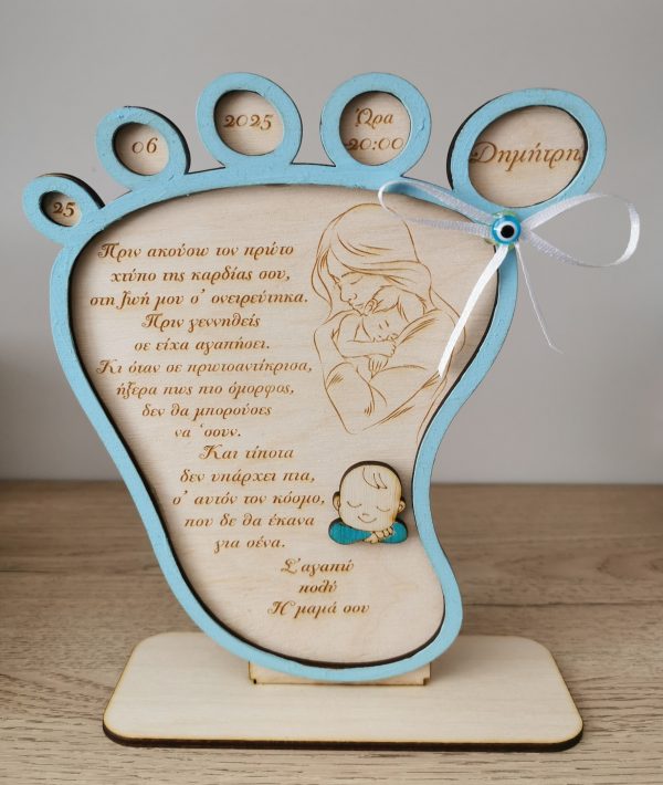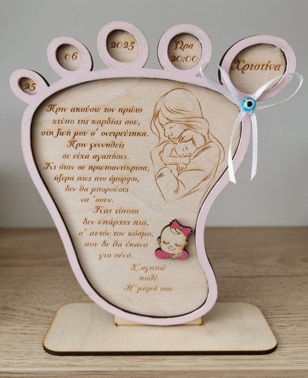 Αναμνηστικό Γέννησης Πατουσάκι 2D – Χειροποίητο, Βαμμένο στο Χέρι με Προσωποποιημένο Κείμενο