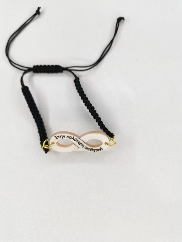 Ένα χειροποίητο βραχιόλι σε σχέδιο άπειρο (∞), δεμένο με την τέχνη του μακραμέ, με δυνατότητα να χαράξετε πάνω στο πλεξιγκλάς . Ιδανικό δώρο για ζευγάρια, φίλους, ή μαμάδες με τα ονόματα των παιδιών τους.