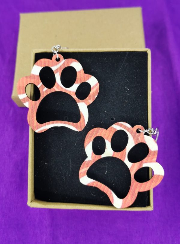 Ξύλινο χειροποίητο σκουλαρίκι με εκτύπωση με ατσάλι
