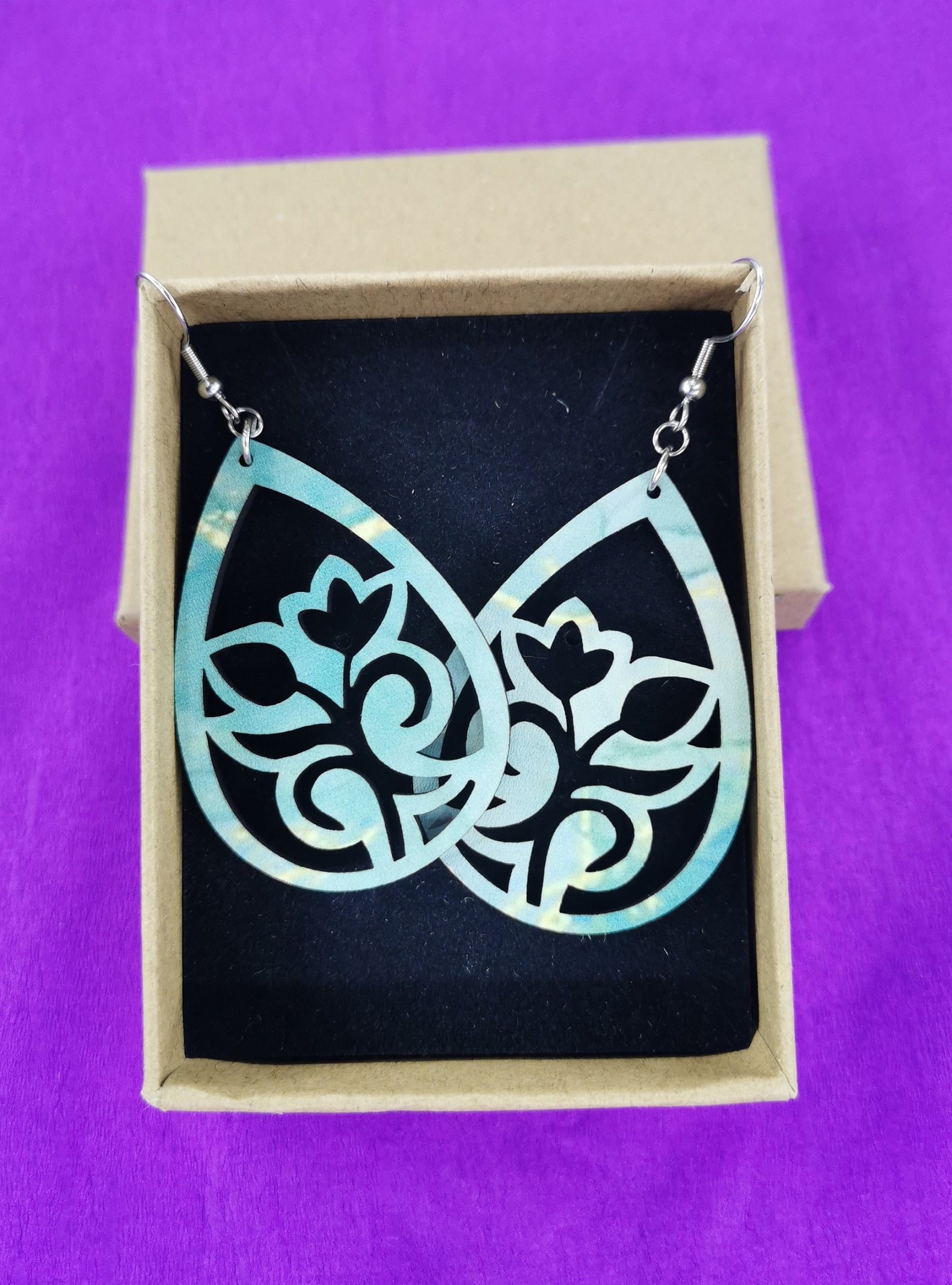 Ξύλινο χειροποίητο σκουλαρίκι με εκτύπωση με ατσάλι