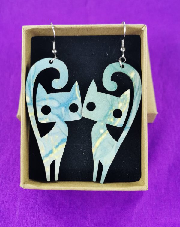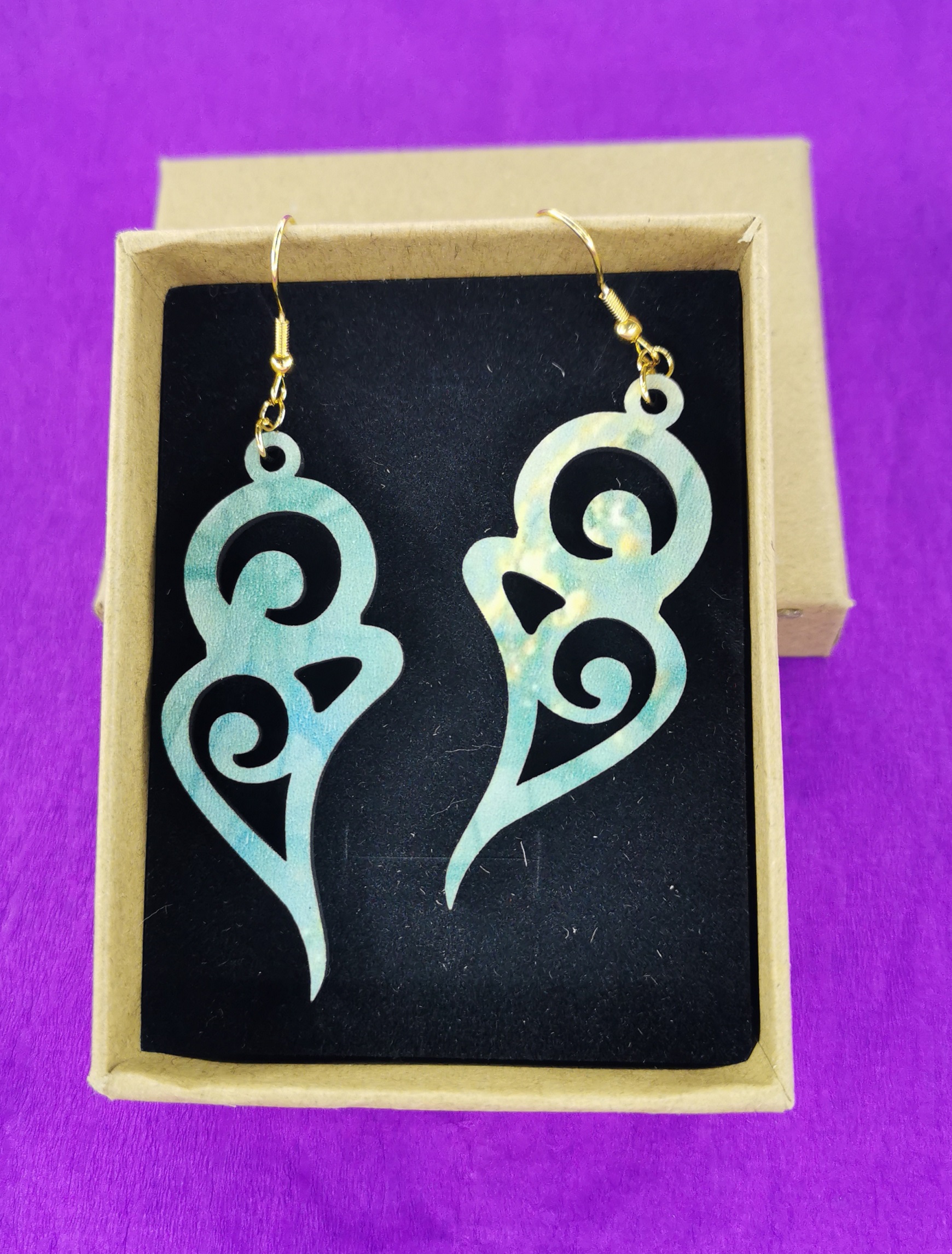 Ξύλινο χειροποίητο σκουλαρίκι με εκτύπωση με ατσάλι