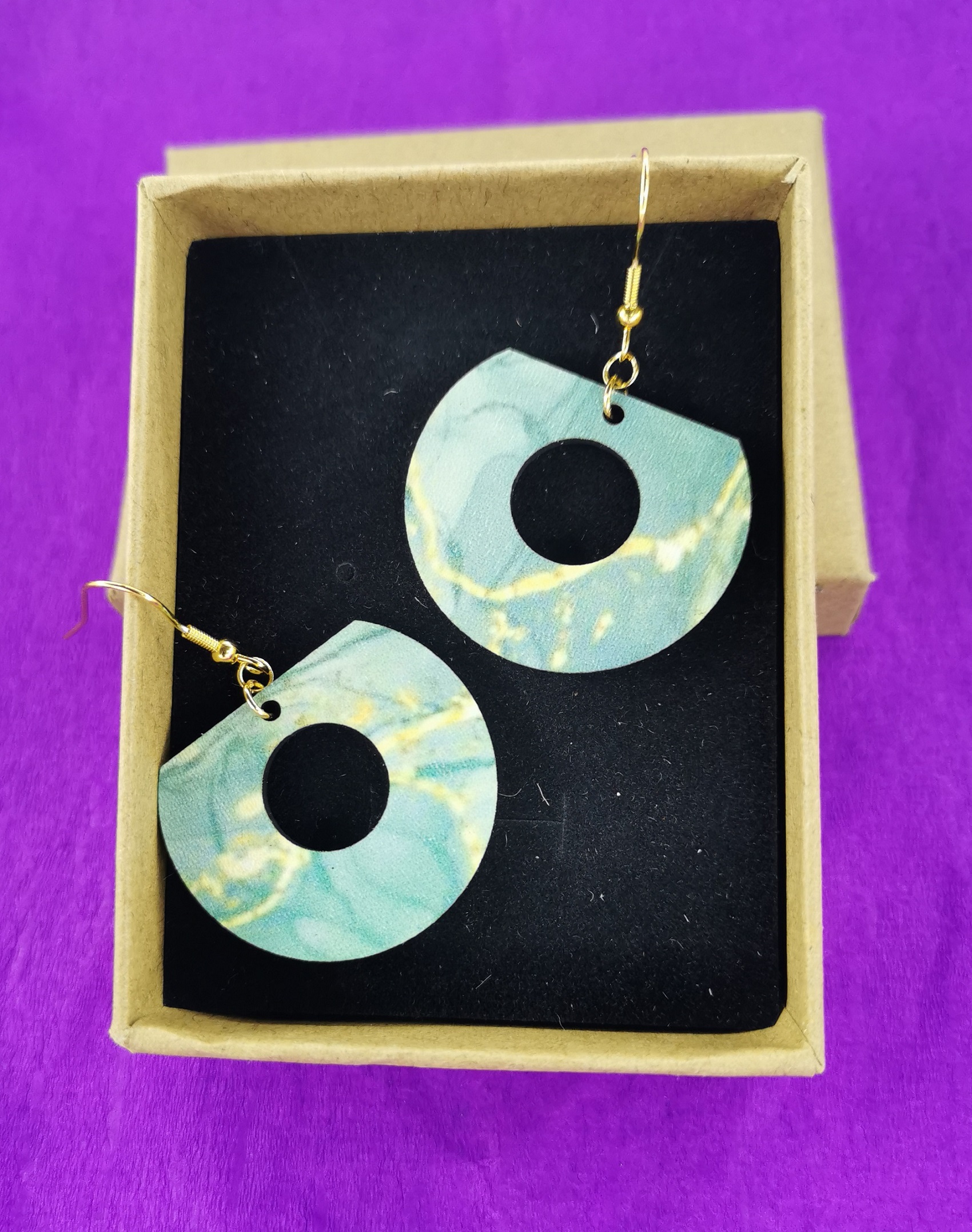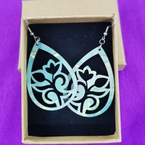 Ξύλινο χειροποίητο σκουλαρίκι με εκτύπωση με ατσάλι