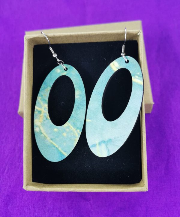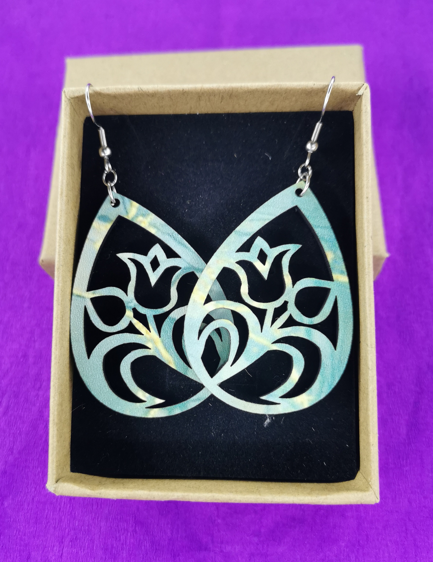 Ξύλινο χειροποίητο σκουλαρίκι με εκτύπωση με ατσάλι