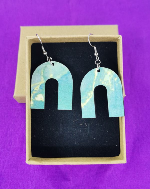 Ξύλινο χειροποίητο σκουλαρίκι με εκτύπωση με ατσάλι