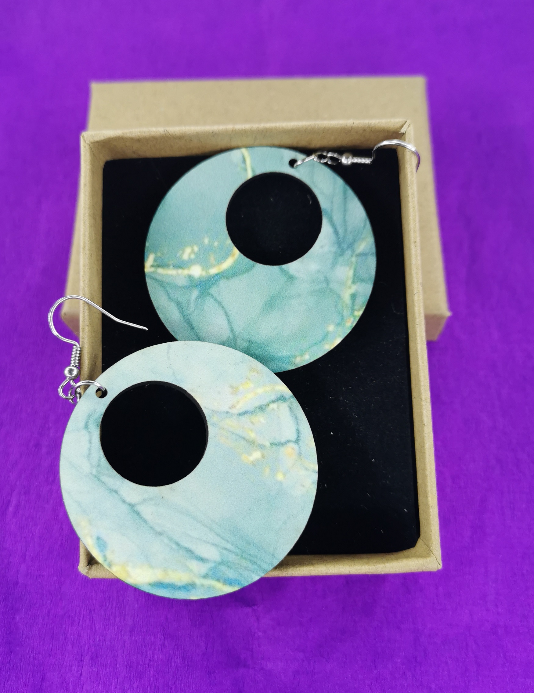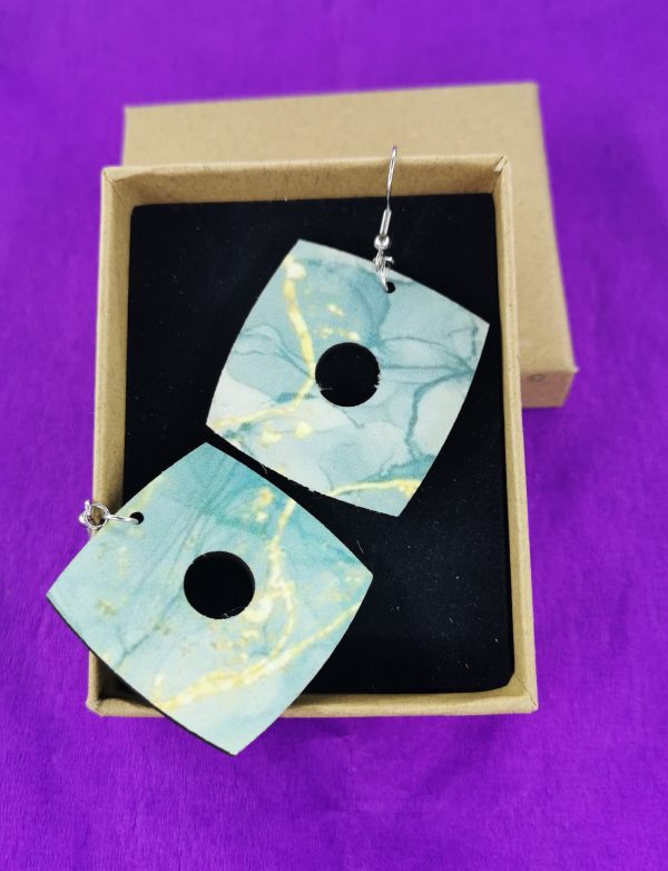 Ξύλινο χειροποίητο σκουλαρίκι με εκτύπωση με ατσάλι