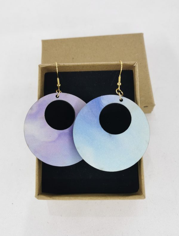 Ξύλινο χειροποίητο σκουλαρίκι με εκτύπωση με ατσάλι