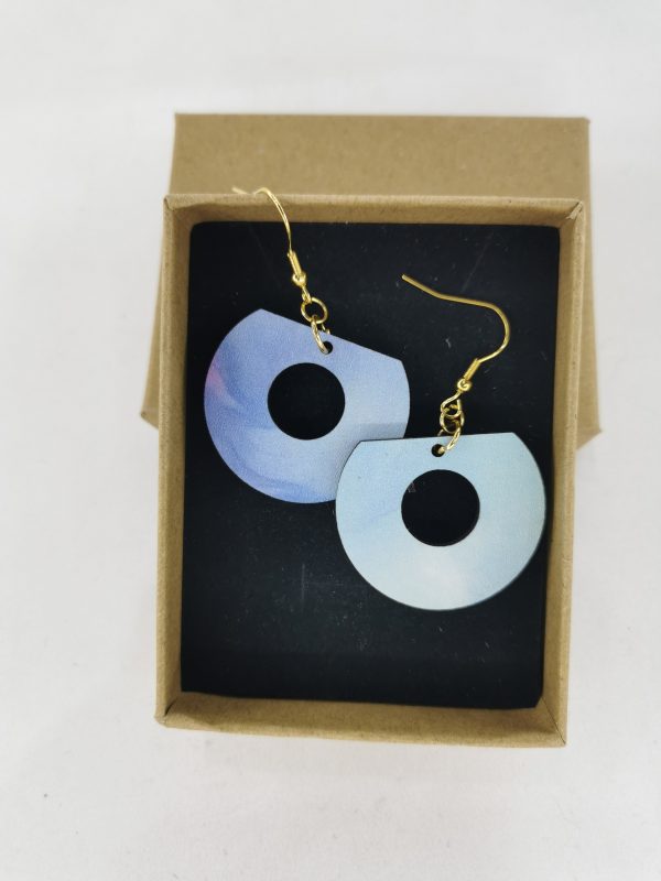 Ξύλινο χειροποίητο σκουλαρίκι με εκτύπωση με ατσάλι