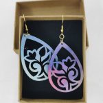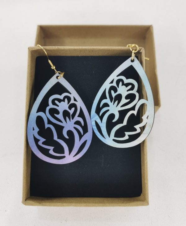 Ξύλινο χειροποίητο σκουλαρίκι με εκτύπωση με ατσάλι