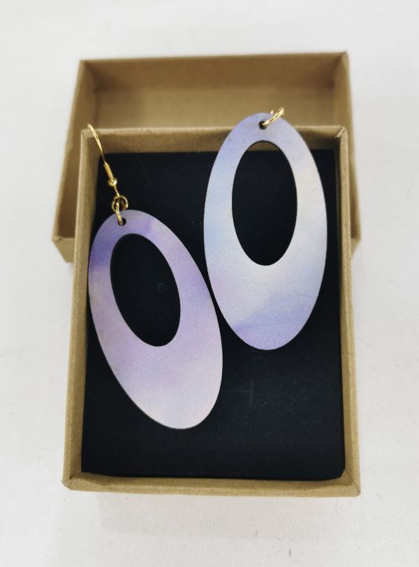 Ξύλινο χειροποίητο σκουλαρίκι με εκτύπωση με ατσάλι