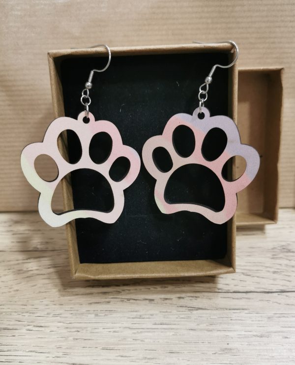 Ξύλινο χειροποίητο σκουλαρίκι με εκτύπωση με ατσάλι