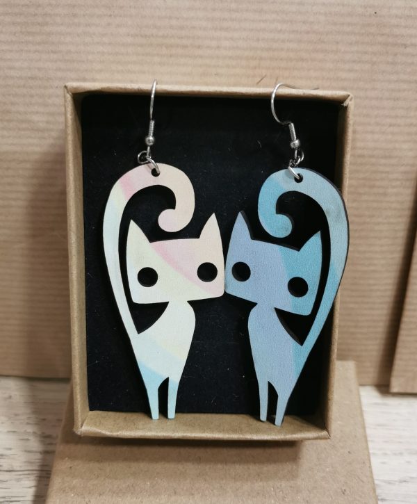 Ξύλινο χειροποίητο σκουλαρίκι με εκτύπωση με ατσάλι