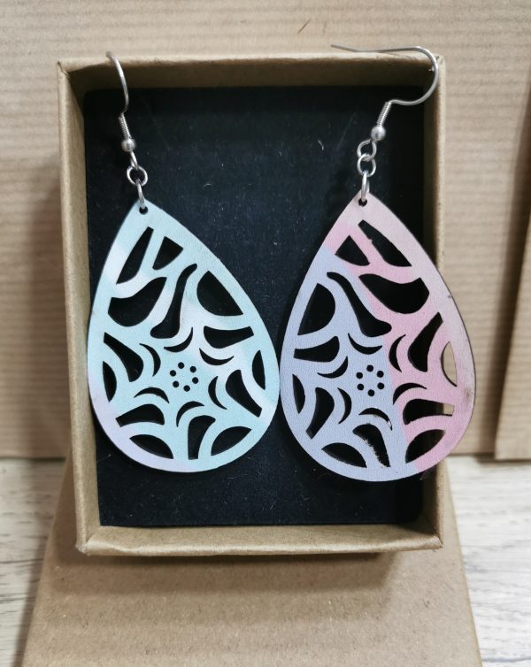 Ξύλινο χειροποίητο σκουλαρίκι με εκτύπωση με ατσάλι
