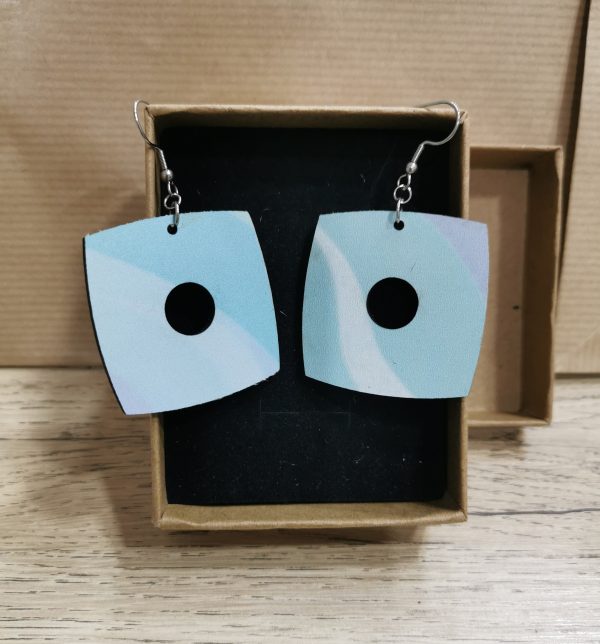 Ξύλινο χειροποίητο σκουλαρίκι με εκτύπωση με ατσάλι
