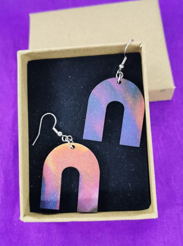 Ξύλινο χειροποίητο σκουλαρίκι με εκτύπωση με ατσάλι