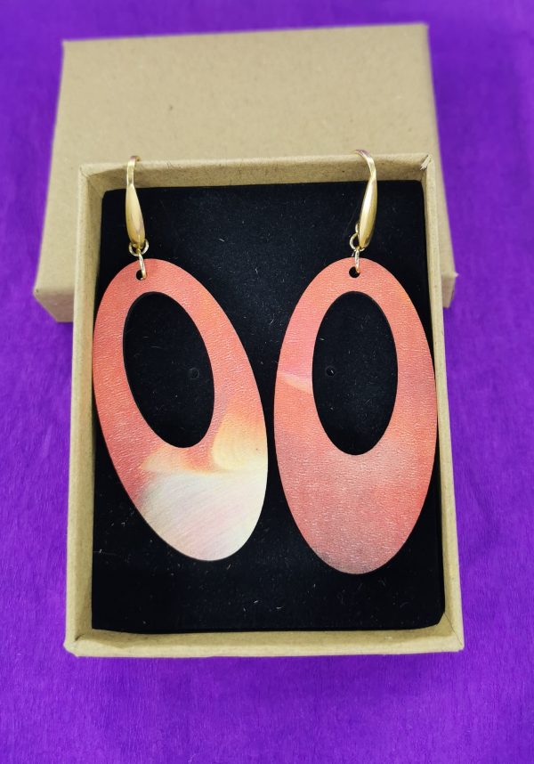 Ξύλινο χειροποίητο σκουλαρίκι με εκτύπωση με ατσάλι