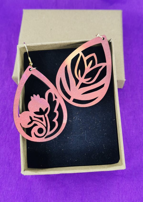 Ξύλινο χειροποίητο σκουλαρίκι με εκτύπωση με ατσάλι