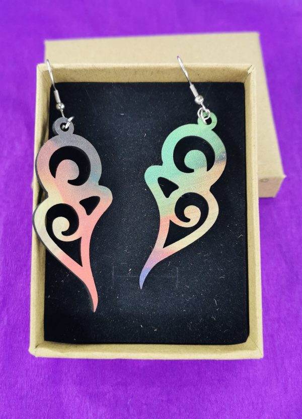 Ξύλινο χειροποίητο σκουλαρίκι με εκτύπωση με ατσάλι
