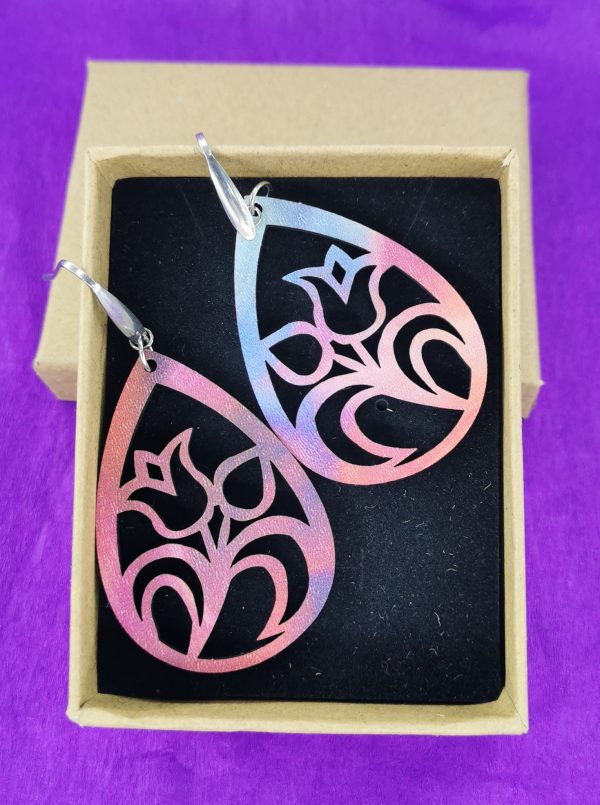Ξύλινο χειροποίητο σκουλαρίκι με εκτύπωση με ατσάλι