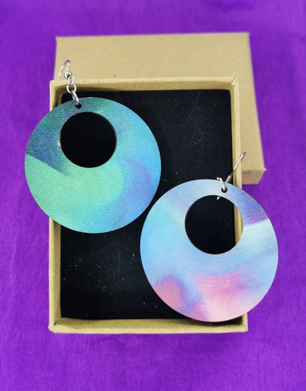 Ξύλινο χειροποίητο σκουλαρίκι με εκτύπωση με ατσάλι