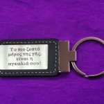 Μεταλλικό μπρελόκ με δέρμα (χάραξη μία πλευρά – κείμενο επιλογής σας)