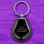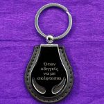 Μεταλλικό μπρελόκ με δέρμα (χάραξη μία πλευρά – κείμενο επιλογής σας)
