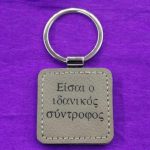 Μεταλλικό μπρελόκ με δέρμα (χάραξη μία πλευρά – κείμενο επιλογής σας)