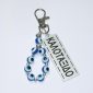 Χειροποίητο μπρελόκ με μεταλλική ετικέτα, ακρυλικές ματόχαντρες και μεταλλικά διακοσμητικά στοιχεία