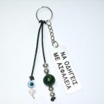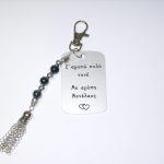 Χειροποίητο μπρελόκ με μεταλλικό στοιχείο, ακρυλική ματόχαντρα, φυσικές ξύλινες χάντρες και μεταλλικά διακοσμητικά στοιχεία