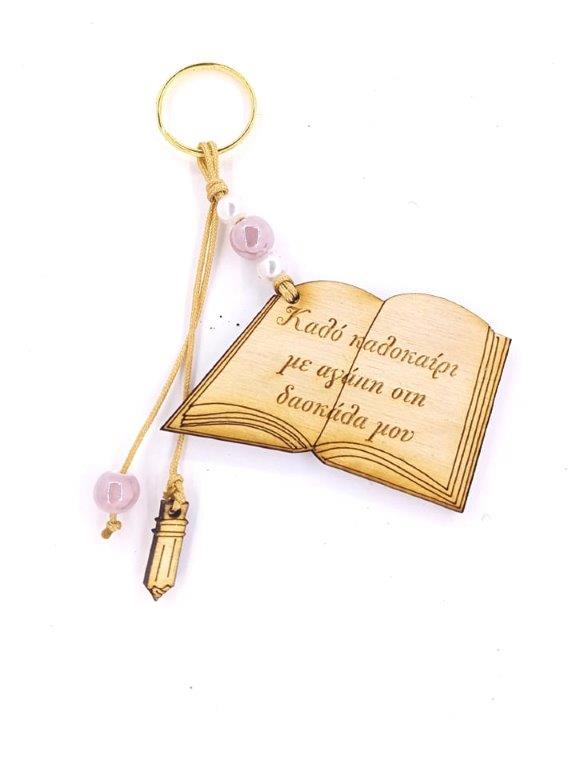 Χειροποίητο μπρελόκ με ξύλινο στοιχείο, ακρυλικές χάντρες.