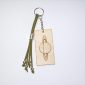 Χειροποίητο μπρελόκ με ξύλινο στοιχείο, σουέτ κορδόνι και μεταλλικά διακοσμητικά στοιχεία.