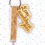 Χειροποίητο μπρελόκ με ξύλινο στοιχείο, φελός κορδέλα, στοιχείο από χαολίτη.
