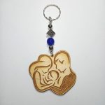 Χειροποίητο μπρελόκ με ξύλινο στοιχείο, χάντρα αχάτης, μεταλλικά στοιχεία και χειροποίητη φούντα.